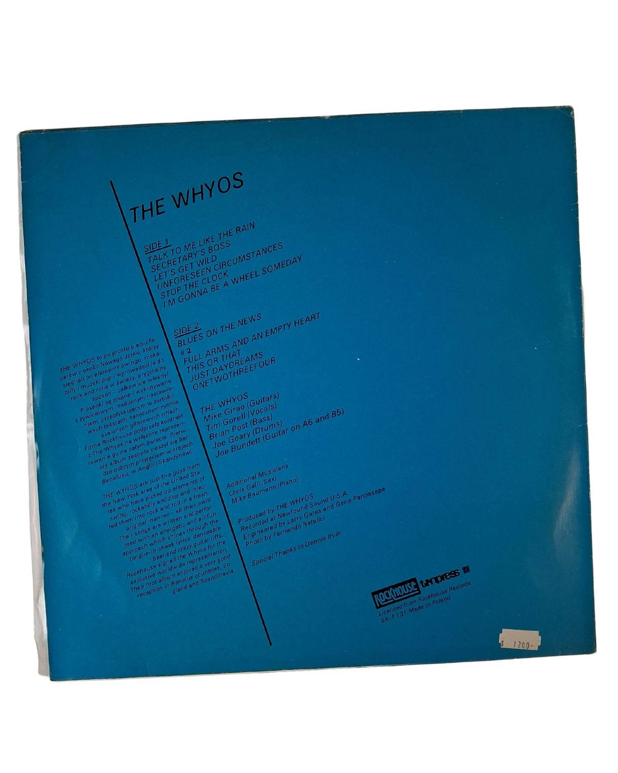 Album „The Whyos” to jedyna płyta zespołu The Whyos, wydana w Polsce przez wytwórnię Tonpress około 1988 roku (niektóre źródła podają również rok 1984). Grupa działała na rodzimej scenie rockowej w latach 80. i wyróżniała się tym, że odważnie sięgała po stylistykę rockabilly i klasycznego rock’n’rolla, w czasie gdy w Polsce dominowały inne nurty – nowa fala, punk i pop-rock.